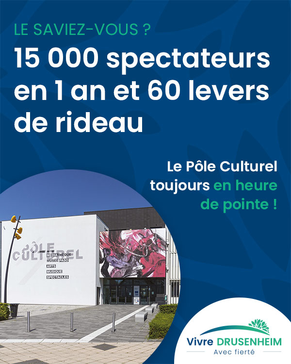 À Drusenheim, la culture occupe une place exceptionnelle ! Son rôle est fondamental dans notre ville. Le Pôle Culturel n’est pas un simple bâtiment mais un socle de notre identité, un outil précieux dans l’éducation de notre jeunesse. C’est un lieu de vie, de rencontres et de découvertes pour des milliers de personnes chaque année.